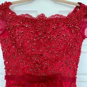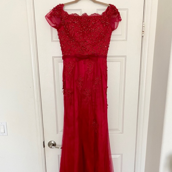 A beauty 3D followers long formal dress perfect for any wedding guest outfit.