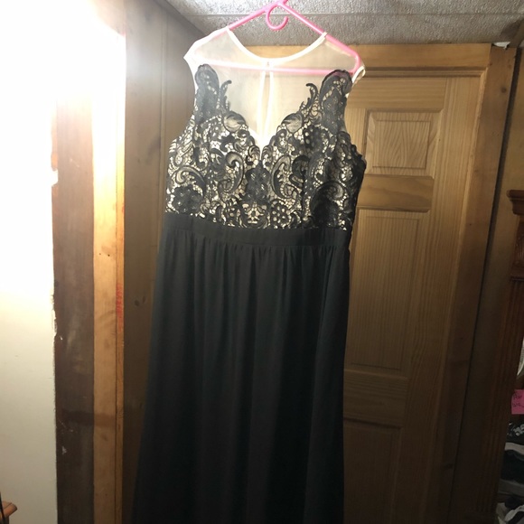Black Floor length gown with lace detail on top of See-through mesh.