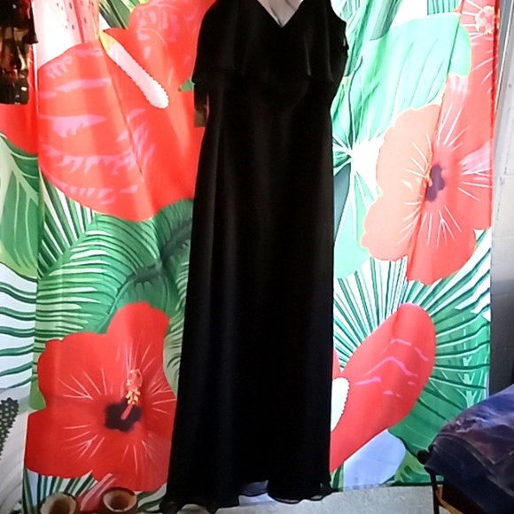 black off the shoulders with spaghetti straps ball room/formal wear. measurements upon request.
