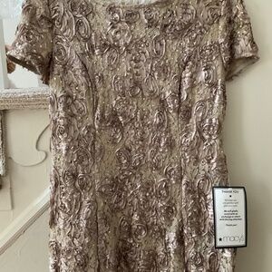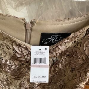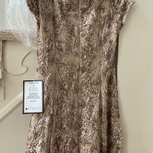Champagne colored appliquéd gown—-mother of bride/groom. Brand new, tags attached. Size 12.