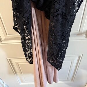 Floor length lace bodice gown. Fully lined. Luxurious flattered fit with comfort. Hidden back zipper. Cutout front and upper back.