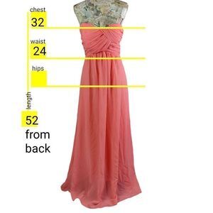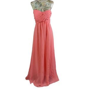 Formal Strapless A Line Peachy Chiffon Floor Length Gown Long Maxi Dress sz XS in EXCELLENT condition!