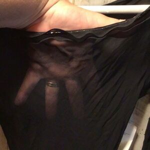 Gown sheer black with gold trim and flower at the bottom by Exyla size 4 new wit