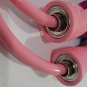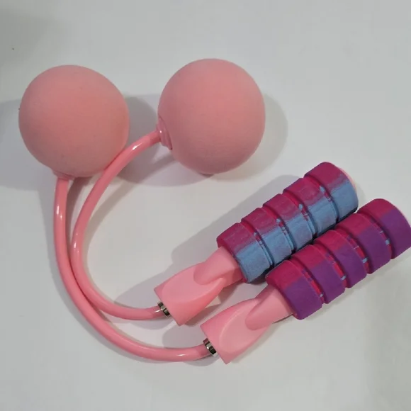 Vibrant pink, blue and purple jump rope with comfortable foam handles. 💫