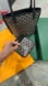 Chic Goyard tote in black and brown. Includes matching pouch. Iconic pattern design.