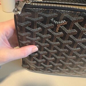 Classic Goyard pouch. Brand new condition no signs of wear. Corners and stitching are all in perfect condition. Purchased in Paris. Will send in the very large yellow Goyard dust bag that I have for the matching tote.