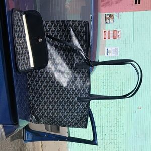 Elegant Goyard tote in navy and black. Perfect for daily use. Chic and versatile.