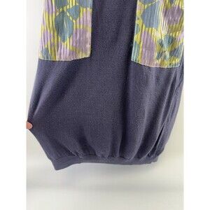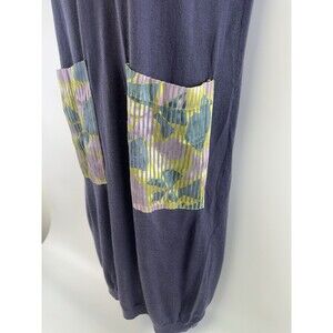 Goyo Mongolia Cashmere Silk Sweater Dress Purple Gray Floral Pockets Crew Small.