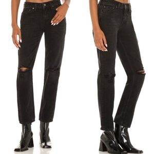 GrIfrnd The Kate Low Rise Slim Crop Jeans Distressed Black Straight