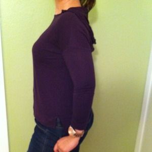 Wool small purple cardigan with pockets. "Gap pure" purple T with hood. Small grey turtleneck, small.