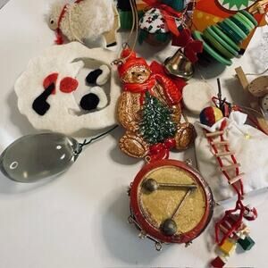 Grab Bag 14, Christmas Ornaments, Mixed Lot handmade, Gordon Fraser Bear, Wooden, Santa, Holiday VTG