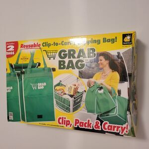 Grab Bag Grocery Shopping Clip to Cart Reusable Expandable Pocket 2 Pack Bags