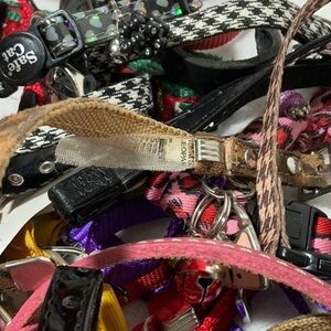 Grab bag of misc. dog and cat collars for toy breed dogs or puppies. 20+ items, most used, some new. All items as-is.