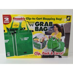 Grab Bag Set of 2 Reusable Shopping Bags Clip to Cart Grocery Pack and Carry