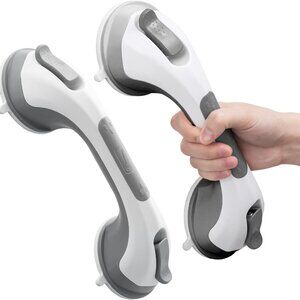 LEVERLOC Grab Bars for Bathtubs and Showers 2 Pack Suction Grab Bar, Heavy Duty 12 Inch Shower Handle Removable Bath Handrails for Seniors and Elderly, Bathroom Safety Grip No Drilling Waterproof Grey