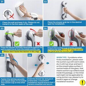 Buying Guides: For the safety of people need to use grab bar, please read this before you buy: (1) The Shower Grab Bar is used ONLY as a BALANCE ASSISTANCE - DO NOT USE IT TO SUPPORT YOUR BODY WEIGHT (2) The Suction Grab Bar measures 12.2 inches long EACH, Only works on tile size LARGER THAN 4x4". (3) This Shower Handle MUST be applied on AIRTIGHT(non air permeable), smooth, flat, non-porous surfaces, such as marble, tile, glass, stainless steel, etc