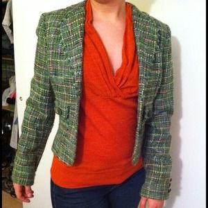 EXPRESS Small tweed jacket with lining- EXPRESS x-small cashmere pink tank- THE LIMITED small wool orange sweater