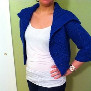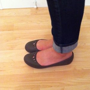 H&M X-small sparkly wrap top, sheer material short wasted- Blue small sparkly short waisted sweater with oversized collar- size 7 flats in brown by crocs- barely worn, 3 times.
