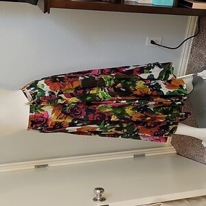 Grace 1990s Tropical Floral Cotton Tea Length Drawstring Circle Tiki Skirt