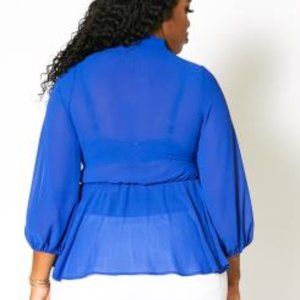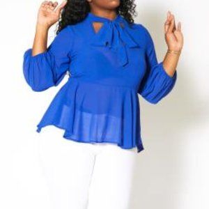 Peplum Bow Tie Blouse Blue Sheer Chiffon 100% Polyester Hand Wash Cold Hang Line Dry