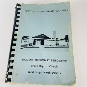 Celebrate community and cuisine with this wonderful vintage 1981 "Grace Baptist Church 25th Anniversary" spiral-bound cookbook from West Fargo, North Dakota! Compiled by the Women's Missionary Fellowship, this complete cookbook is a cherished piece of local history and a testament to shared recipes.