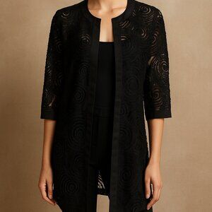 Grace Chuang Black Lace Jacket Topper Womens Medium Sheer Evening Dressy