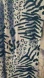 Open front evening jacket with stand up collar. Golden brown taffeta background with black velvety flocked animal print. Tulip cuffs. Hip pockets. Finished seaming on solid brown interior.