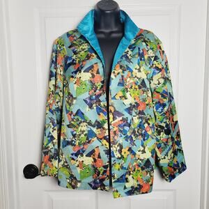 Grace Chuang Jacket Womens Medium Multicolor Reversible Abstract Floral Artsy MCM