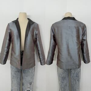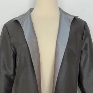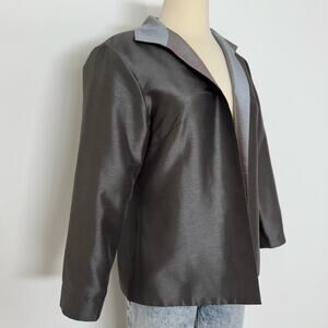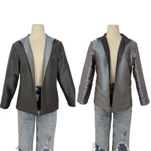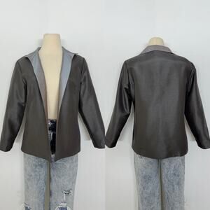 Grace Chuang Open Front Reversible Blazer Jacket Shimmery Silver Gray Size S