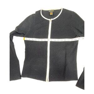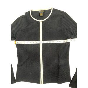 Grace Dane Lewis Large Black/White Fine Knit Top Trim Zipper Front 86L