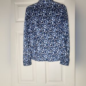Grace DaneLewis 8 BlackBlue 96%SILK FloralPrint Lsl ButtonsUp Women ShirtBlouse