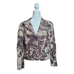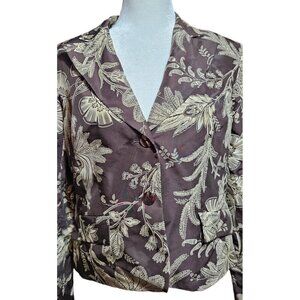 Grace Elements 100% silk shell brown and tan floral jacket blazer size 10