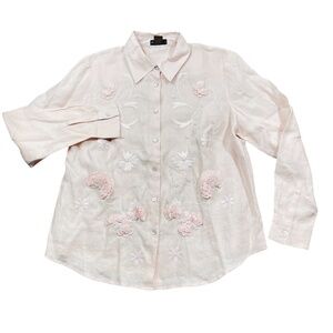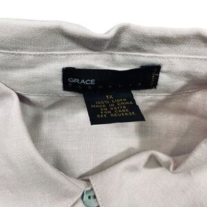 Grace Elements 1X Dusty Rose Embellished Button Up 100% Linen