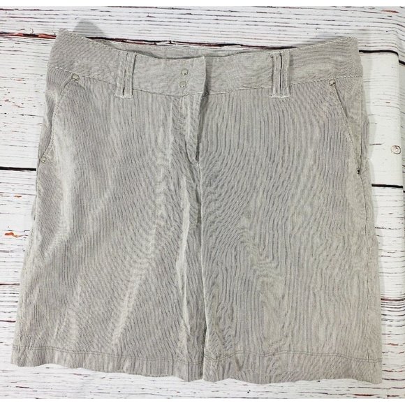 Grace Elements Bermuda Shorts Size 14 Tan White Stripes Cotton Nautical Pockets