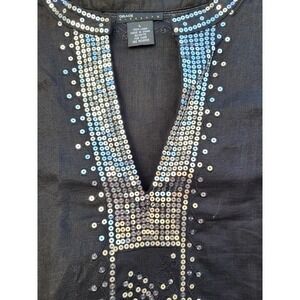Grace Elements V Neckline 3/4 Sleeve Sequin Embellished Linen Tunic Top Size Large Made in China