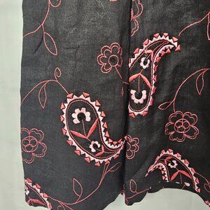Grace Elements Black Pink Embroidered Paisley Skirt Linen Pleated Boho 10P