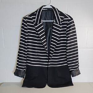 Grace Elements Black and White Striped Knit Open Blazer Lined Pockets