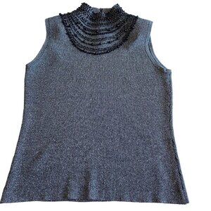 Grace Elements Metallic Beaded Neck Sleeveless Top M Elegant Chic Holiday Party