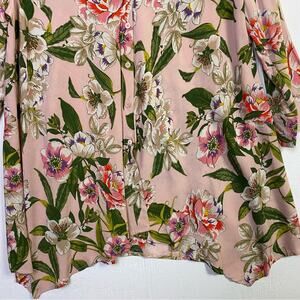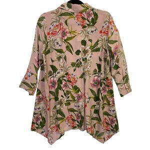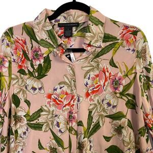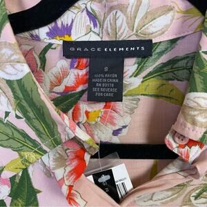 Grace Elements Pink Green Floral Button Up Blouse Top Size Small