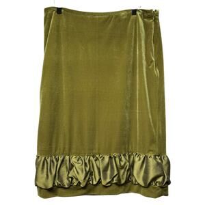 Grace Elements Size 12 Olive Green Velvet Velour Skirt Ruffle Bubble Hem Holiday