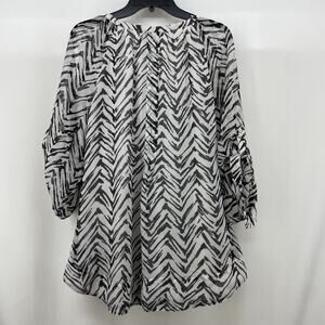 Grace Elements Size L Pintuck Pleated Blouse Zebra Animal Print Tunic Top Pocket