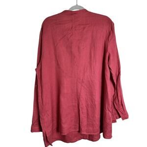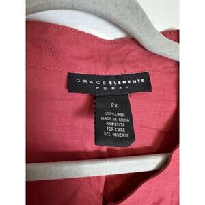 Grace Elements Tunic Top 100% Linen Button Front Long Sleeve Salmon 2x