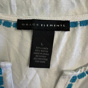 Grace Elements White Blue Embroidered Linen Blend Tunic Top L Classic Coastal