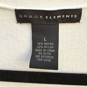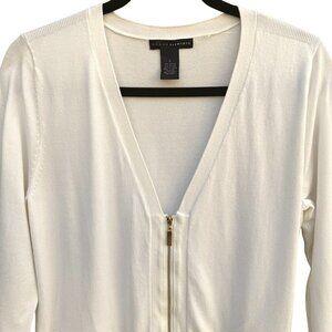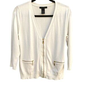 Grace Elements White Cardigan Zipper Accents Pockets 3/4 Sleeve Lightweight Knit