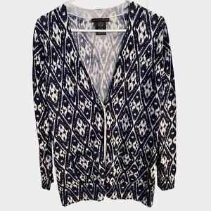 Grace Elements Womens Medium Cardigan Sweater Blue White Print Pockets