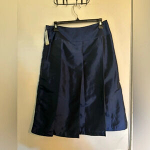 Grace Elements Womens Navy Tafetta Pleated Midi Skirt Sz 6 Side Zip Y2K