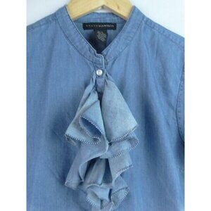 Grace Elements Women's Shirt Size Medium Blue Ruffle Long Sleeve Button Down Top