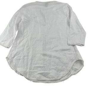 Grace Elements Women's White Tunic Top Sz Small Linen blend 3/4 sleeves pullover