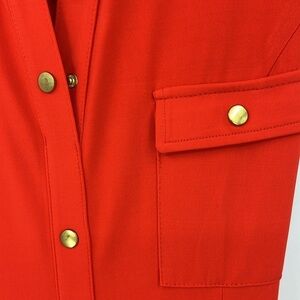 Two front working breast pockets, pearl buttons, beautiful orange, color, and sleeveless stretchy NWT’S SZ L