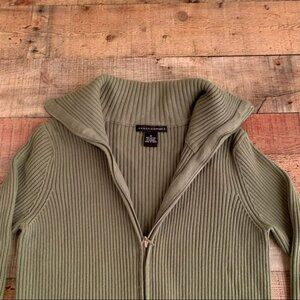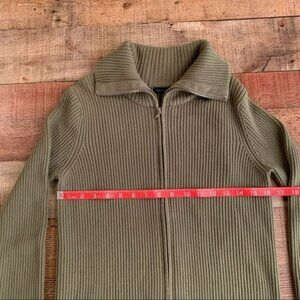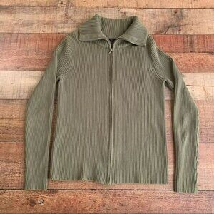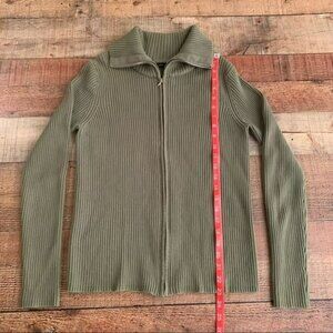 Grace Elements ribbed knit full zip up green sweater with oversized collar - M